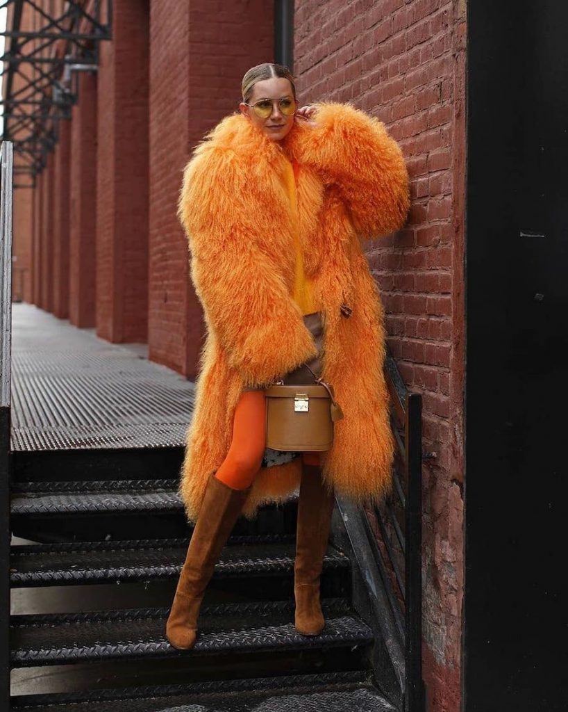 5. Eine gute Art und Weise, wie Timake ein One-Tone-Look noch mehr hervorsteht, ist, mit Cutsand-Formen zu experimentieren. Sie können einen flaumigen gemütlichen Mantel schicken, indem Sie mit hohem Stiefel eine klassische Ledertasche und einen heruntergelassenen bunhairdo kombinieren.
