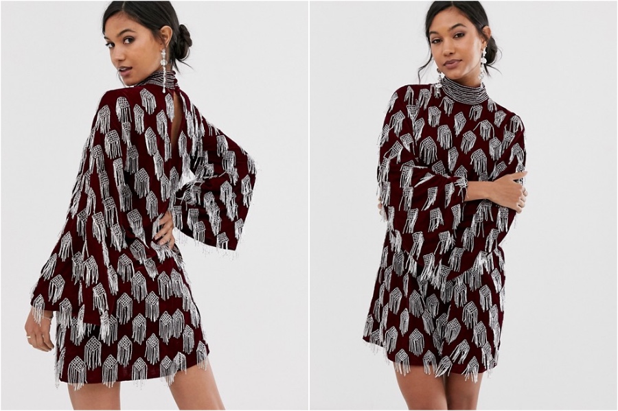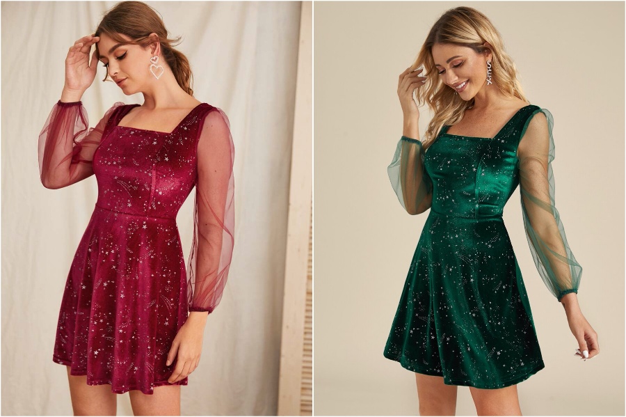 1. Beginnen wir einfach. Ein Samtkleid ist Aclassic für den Weihnachtsferien und es funktioniert auch für Silvester. Bonuspunkte, wenn es auch hübsche Sterne hat.