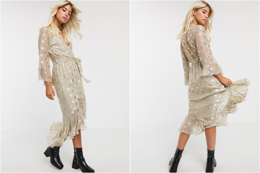 10. Goldene Polka-Punkte auf einem nackten Kleid sind das ein festliche, aber elegante. Koppeln Sie es mit schwarzen Stiefeln für ein edgierer Look ora nackter nackter Ferse für ein eleganteres und setzen Sie einen zusammen.