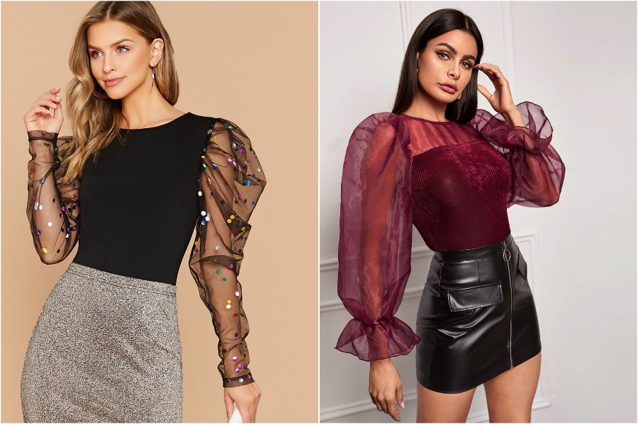 6. Puffy Organza-Ärmeln sind in diesem Jahr sehr in diesem Jahr, lass uns echt sein, tops mit Ärmeln wie dieses aussehen sehr festlich und perfekt für neue Jahre. Sie können für Burgund, ein Feiertagsklassiker oder ein Blackwith-Konfetti-Pailletten als Party-Wahl.