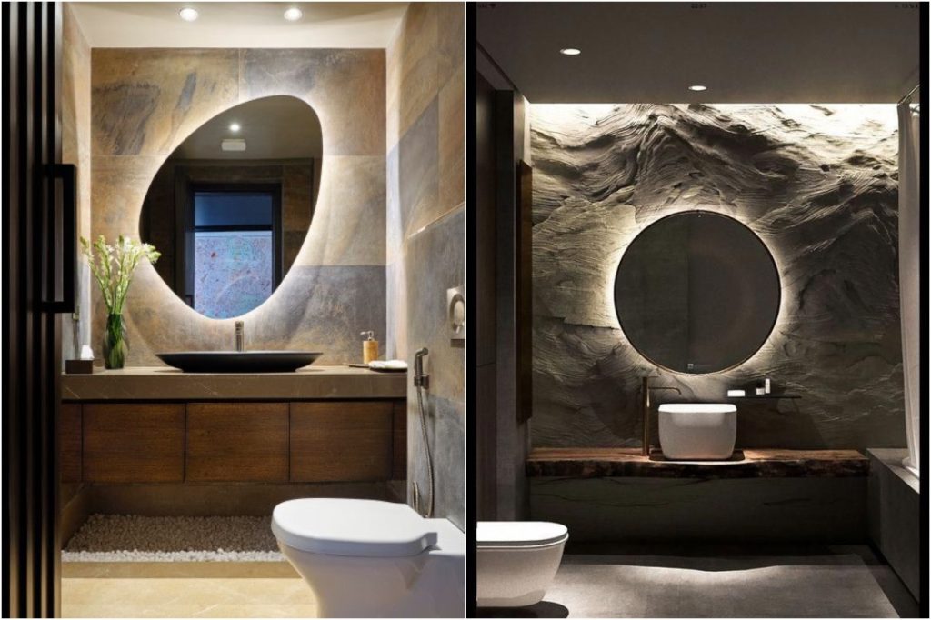 Was ist ein Badezimmer ohne Spiegel? Der beste Weg, um ein Badezimmer auszusehen, ist modern, um sie mit hinterlegten Spiegeln zu integrieren. Diese Funktion ermöglicht die Umgebungsbeleuchtung abzüglich der Blendung oder der Reflexion. Es kann sogar ein Nachtlicht ersetzen und als ein Dekor mit diesem glühenden Effekt fungieren, was es wie einen schwimmenden Spiegel aussieht.
