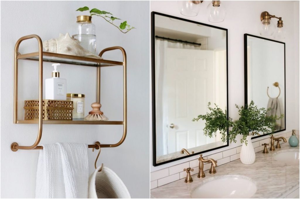 Messinghardware ist so vielseitig - insbesondere mit einem gedruckten Tapeten oder einem anderen exzentrischen Detail. Messing ist warm, aber modern. Es ist großartig, mit anderen Aspekten zu schauen, die zusammenarbeitete oder anscheinend nicht zusammenhängende Themen zusammenbinden. Betrachten Sie das Paar von Messing-Spiegelrahmen, Armaturen und Schubladengriffe mit einer grafischen Fliese oder ein lebendiger Tapete.