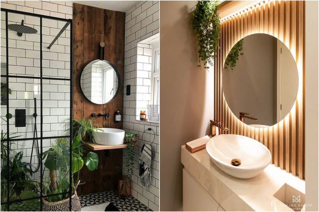Die Verwendung von natürlichen Materialien kann ein Gefühl der Ruhe in einen Raum bringen und eine Spa-Vibe schmieden. Denken Sie an sandfarbene Hinterspritzer, natürliches Holz (oder holzgetäfelte Decken) und Bambusakzente. Sie können sogar ein paar Pflanzen hinzufügen - das Eukalyptus macht Ihre Duscherfahrung Lebensveränderung.