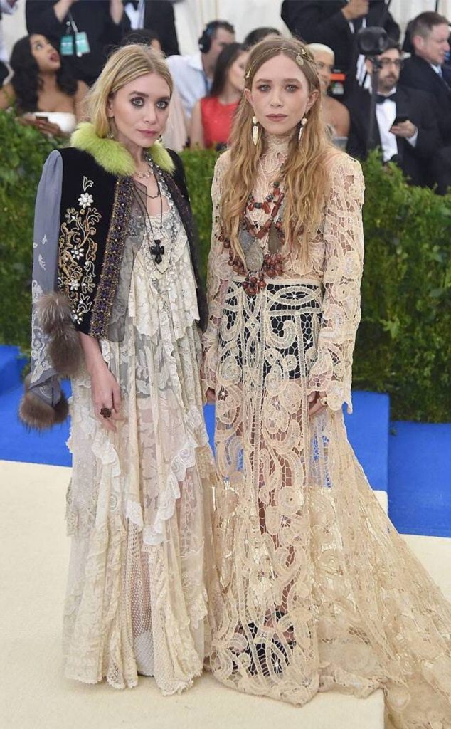"Rei Kawakubo / Comme DessGegons: Kunst des Zwischen-Treffens" Thema Met Gala war ein großer Erfolg für Theolsen-Zwillinge. Diese atemberaubenden Spitzenkleider sahen auf sie unglaublich aus, und dies ist der Punkt in der Geschichte, in dem der Olsen Boho-Chic erreichte.