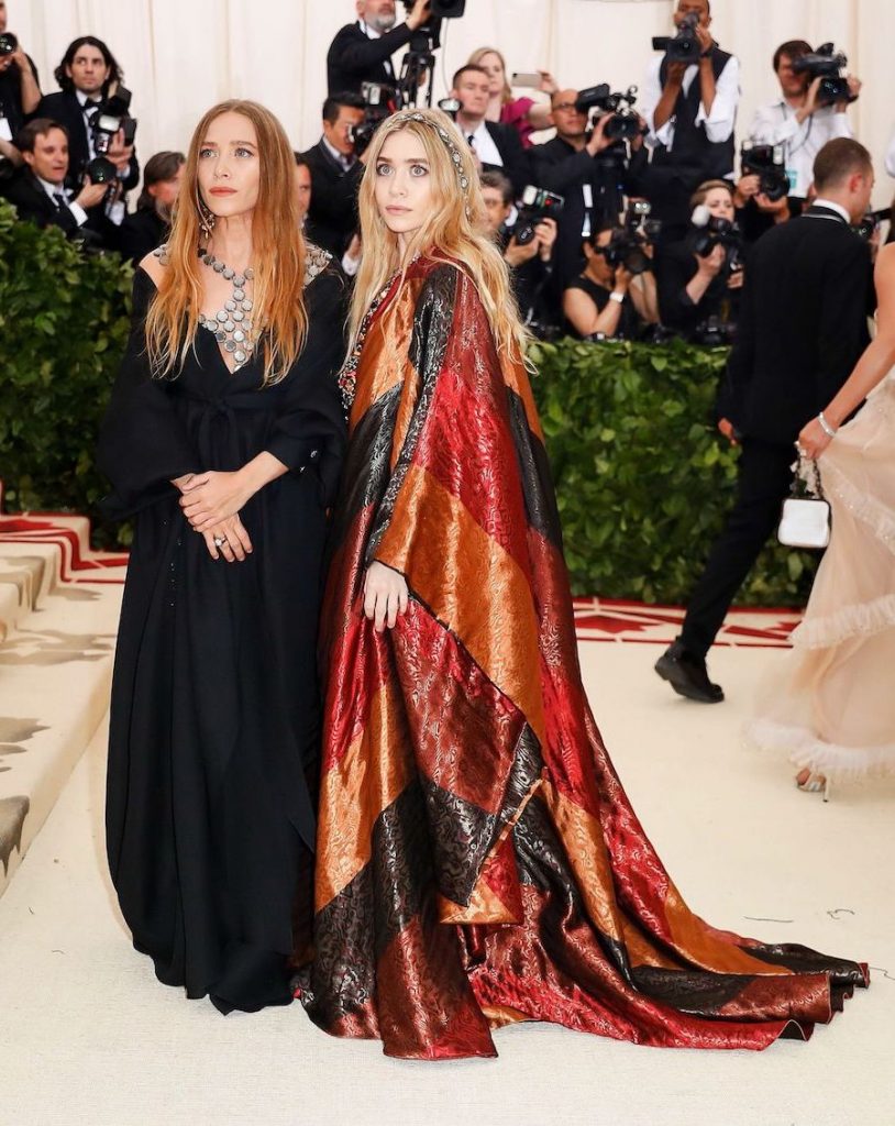Das Thema war Himmelslybodies: Mode & die katholische Fantasie. Und in unserer Meinung nach sehen die Zwillinge einen gottähnlichen Boho-Look. Alle wunderschöne Stoffe und hübsche Juwelen. Sie sehen, als würden sie in ein Gemälde gehören.