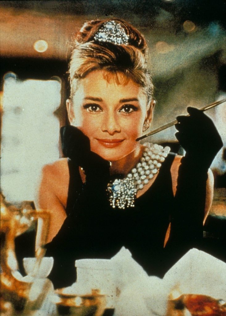 Audreyhepburn ist zu einem echten Symbol für Glamourös und Eleganz geworden, mit dem wunderschöne AussehenFrühstück bei TiffanyDas schwarze Kleid, schöne weiße Peals und eine Zigarette in einem Longholder ... Es ist der anerkannte Look aller Zeiten!