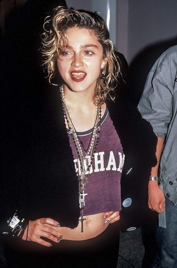 Der Beginn der 80er Jahre Madonna hat den Beginn der Pop-Szene getroffen, nicht nur, dass jeder mit ihrer mutigen Musik und Texte, sondern in der Erkundung neuer Looks wagte, die meisten von jedem von jedem weltweit führenden Trends von Mädchen. Dies war die Zeit, als ihre zweite SingleWie eine Jungfrauwar aus und ihr Stil, der gebleichte Haare und Fischnetzstrümpfe enthielt, wurde wirklich berühmt.