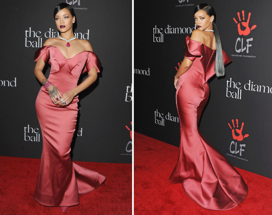 Zac zog alle Haltestellen für Glamönigin Rihanna heraus, dessen Kleid 2014 wie eine zweite Haut am Diamantball passt. Paarte mit einem passenden rosa Mega-Diamanten an ihrem Finger und seinem Hals, das ist vielleicht unser Lieblings-Rihanna-Mindestmoment. Niemand tötet, dass dramatische In-Cut and Out-Flare wie Posen.