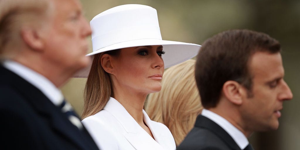Einer der zweite Tag ofFrench Präsident Emmanuel Macron Staatsbesuch, wandte sich Melania Köpfe mit asuit für Michael Kors. Sie trug auch eine Herve‘Pierre hat, dass viele wurden totallysurprised durch.