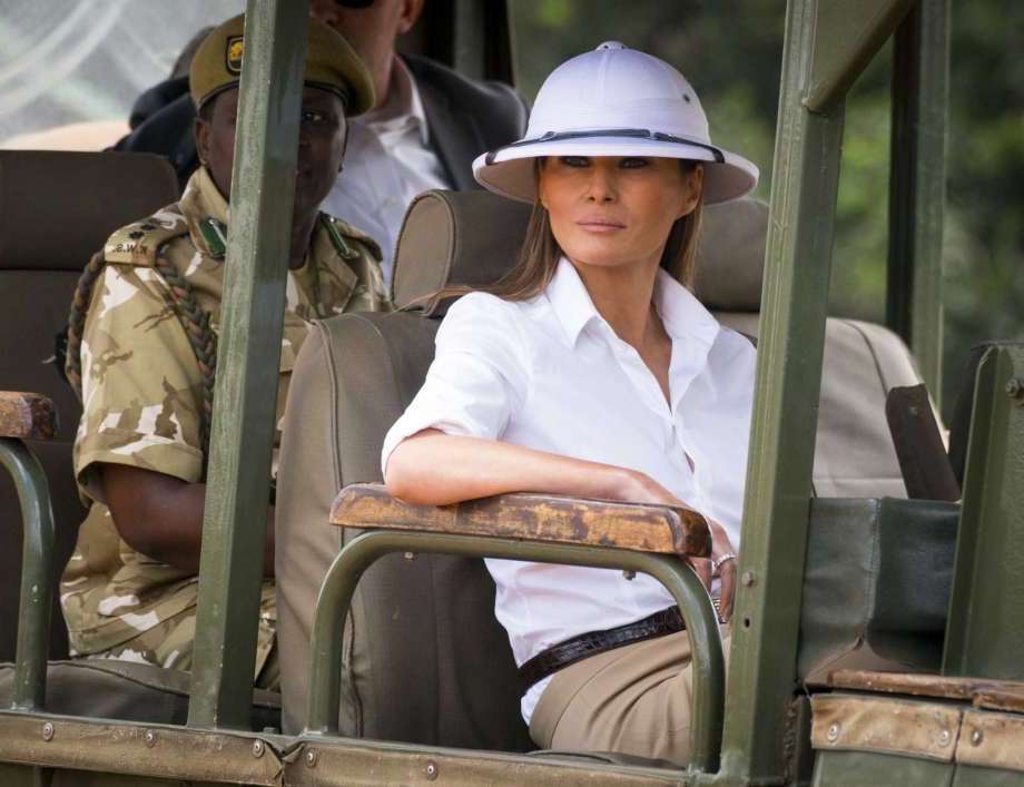 Im Oktober 2018 nahm Melania Trump ihre erste Solo-Reise nach Übersee nach Afrika. Während auf einer safariexcursion, verursacht sie einen Medienrummel für ihre Wahl eine Menge Augenbrauen hoch aufgrund der langjährigen dunklen Vergangenheit in Afrika assoziierten withthe Tropenhelm ein „Mark“ helmet.This zu tragen. Ihre Wahl diesen Hut zu tragen, wurde als culturallynaive angesehen und sogar unempfindlich.