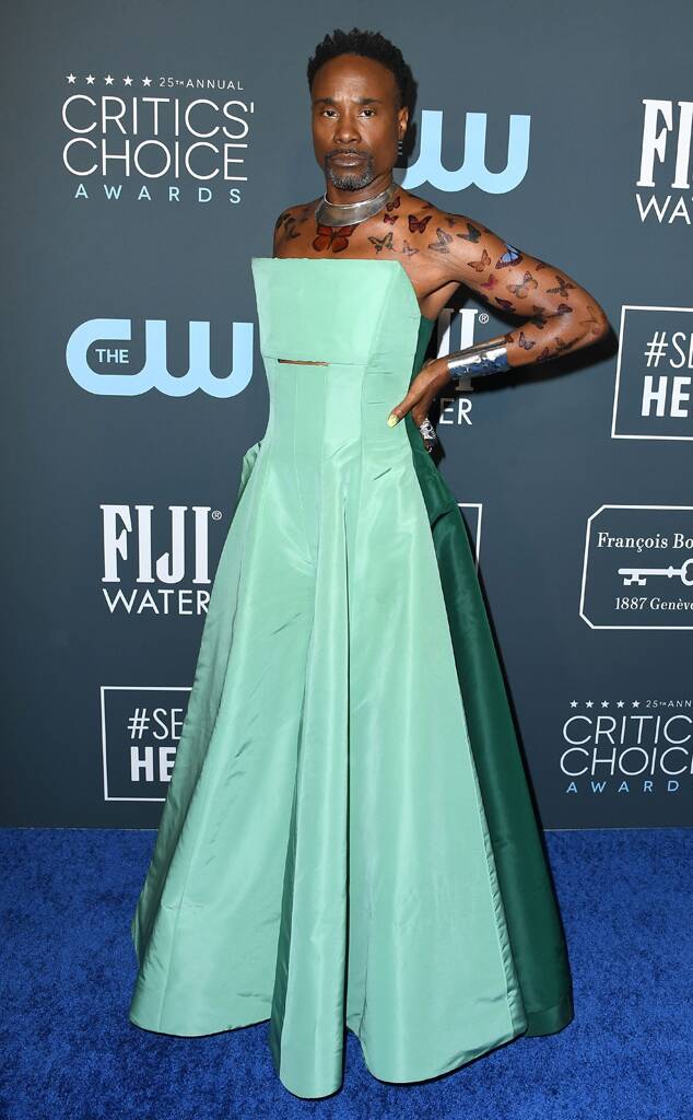 Billyporter ist ein solcher Vertrauen und Gnade mit seiner geschlechtsspezifischen Flüssigkeit, die auf jeder Veranstaltung zur Perfektion abgeschlossen ist. Die "Pose" -Mininee schaukelte ein mit dem Seafood-Jumpsuit-Kleid, das sowohl vielseitig als auch völlig dramatisch war, der von Hogan McLaughlin erstellt wurde. Der einzigartige Hosenanzug sieht aus wie ein Kleid mit einem trägerlosen Mieder und einem geraden Halsausschnitt. Komplett mit handgemaltem Schmetterling Tattoos