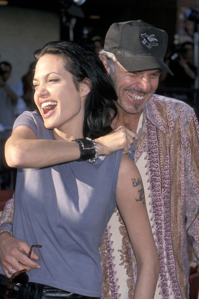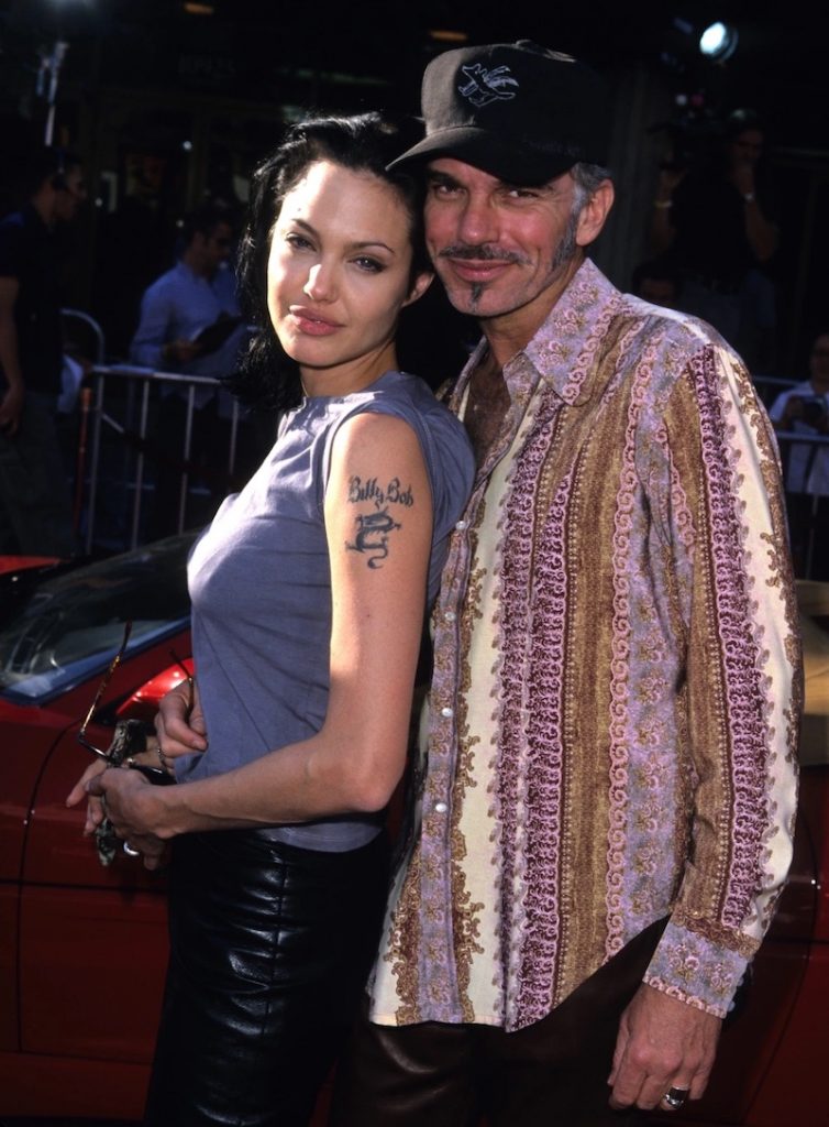 6. Wenn Jolie-Schauspieler Billy Bob Thornton verheiratet ist, nahm sie hart von ihrem üblichen Hollywood-Glamer, stattdessen experimentierte sie mit dunklerem Make-up-Look, schwarzen Haaren und Rocker-Mädchen.