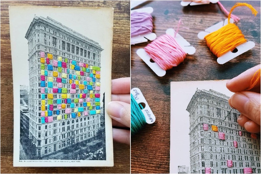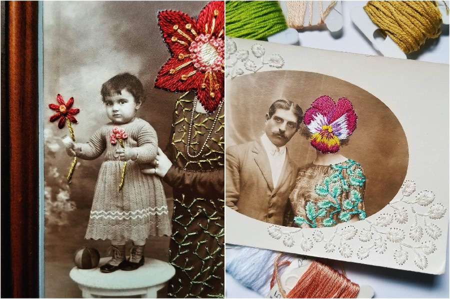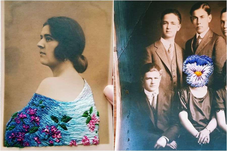 Stickerei, die ein zweites Leben an Vintage-Fotos verleiht