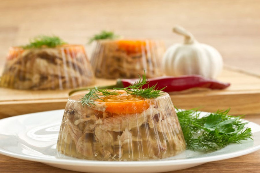 Kholodetsis Einer der Weiferengerichte, die Ausländer stoßen könnten. Es kann aus verschiedenen Arten von Fleisch hergestellt werden. Manchmal wird es mit Kalbfleisch hergestellt, manchmal Schweinefleisch, aber die häufigste Art ist mit Hühner- oder SPECIFIC-Hahn hergestellt. Die Idee besteht darin, das Fleisch mit Knochen, Zwiebeln, Karottenstücken und Gewürzen zu kochen, um eine wirklich starke Brühe zu schaffen. Das Fleisch trennte sich dann von den Knochen und platzierte in eine Schüssel mit mitboilierten Karottenstücken und bedeckte dann mit einer Brühe. Die Schüssel ist in einem kühlen (aber nicht eisketten) Platz gelassen, um sich abzukühlen und in Gelee zu bürsten. Wenn Sie noch nie etwas ausprobiert haben, ist -Ukraine definitiv der Ort, um KHOLODETS einen Versuch zu geben.