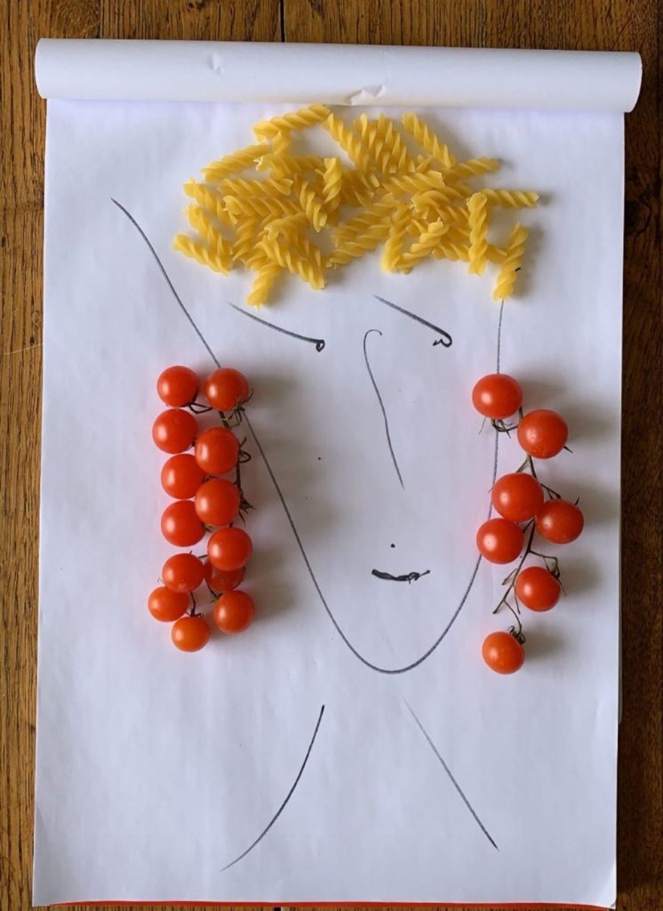1. Dies ist eines der ersten Beispiele, dass Simon himself.Call dies ein dekonstruiert nimmt auf Pasta. Um ein skizzenhaftes Gesicht, ist welliges Haar von Pasta-Nudeln aus, während Kirschtomaten für somegorgeous baumelnde Ohrringe machen.