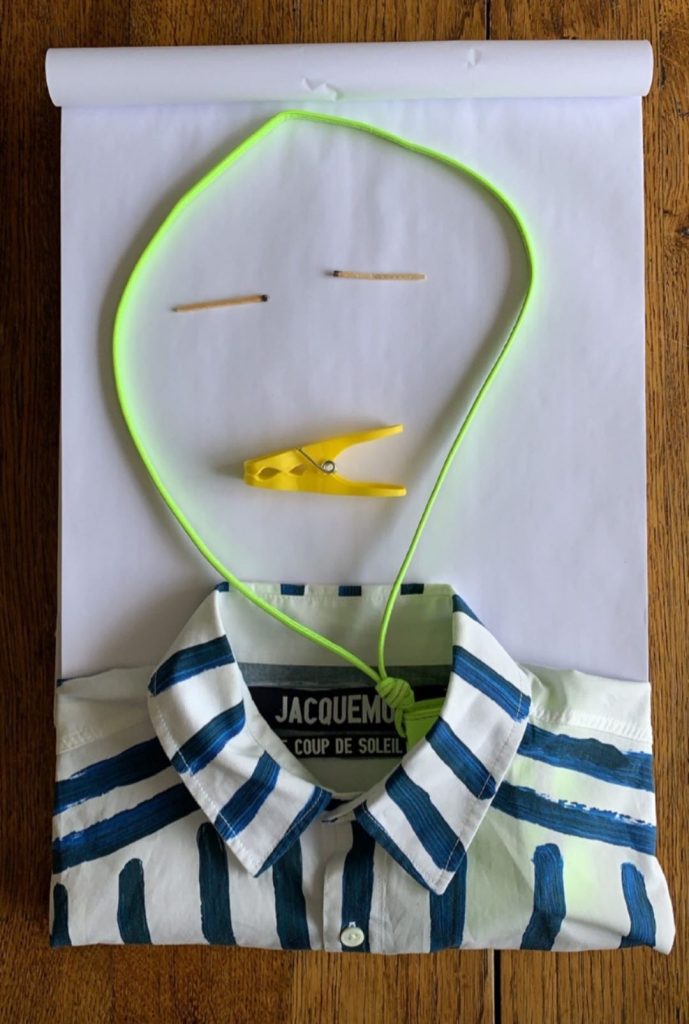 3. Für Jacquemus'sfinal Look, er zusätzliche kreative und gebrauchte eine seiner ganz eigenen Hemden bekam (die sofort wollen wenow.) Einige Knochenstruktur ist aus einem Neon-Lanyard gemacht, sind whileeyes zu den Spielen aufgrund schmal. Die Lippen sind ein Wäschestift, und wir wollen eine videowith eine sprechende Ausgabe.