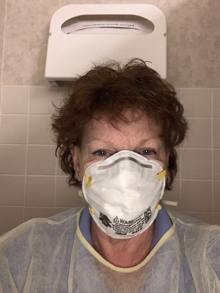 2. Diese schöne Dame ist immer noch in ihren Schrubben - wir fragen uns, als sie das letzte Mal nach Hause ging. Sie hat immer noch ein Lächeln auf ihrem Gesicht, der die strahlende und unbesiegbare positive Energie zeigt, dass viele Gesundheitskräfte in dieser schrecklichen und turbulenten Arbeiter immer noch festhalten. Gehe weiter, Schwester, du hast das!
