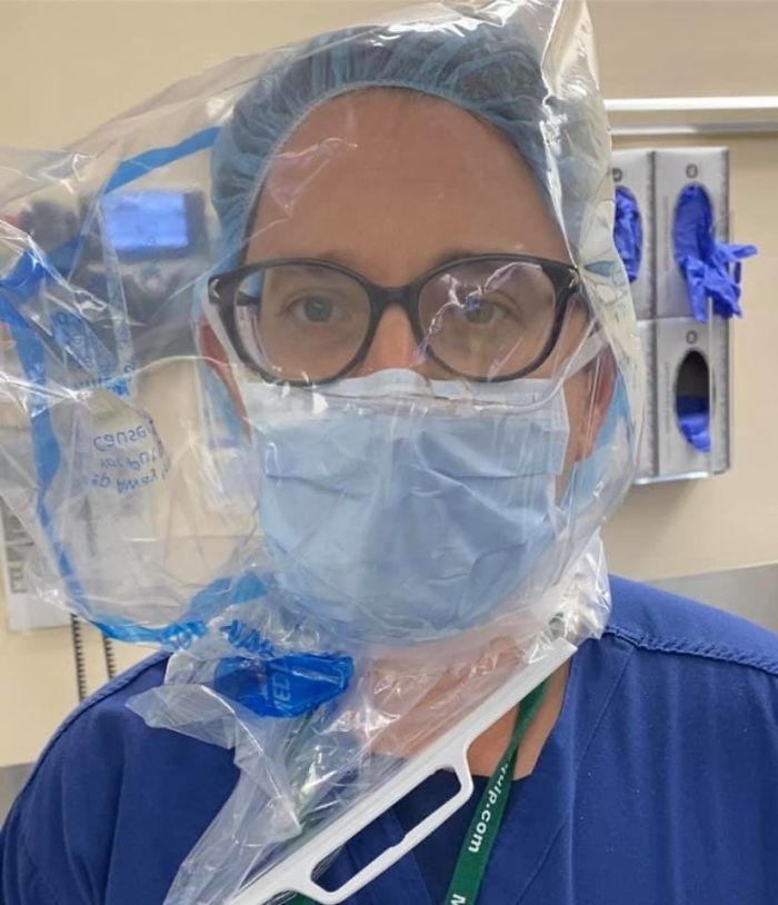 6. Warum hat dieser Anästhesist eine Plastiktüte über seinem Kopf? Weil sein Krankenhaus aus persönlicher Schutzausrüstung ausgeht. Aus diesem Grund ist er gezwungen, einem Plastiktüte ein Sauerstoffrohr hinzuzufügen. Und alle PPE werden nur für COVID-19-Fälle verwendet, läuft jedoch noch aus. Stoffmasken schneiden es einfach nicht.