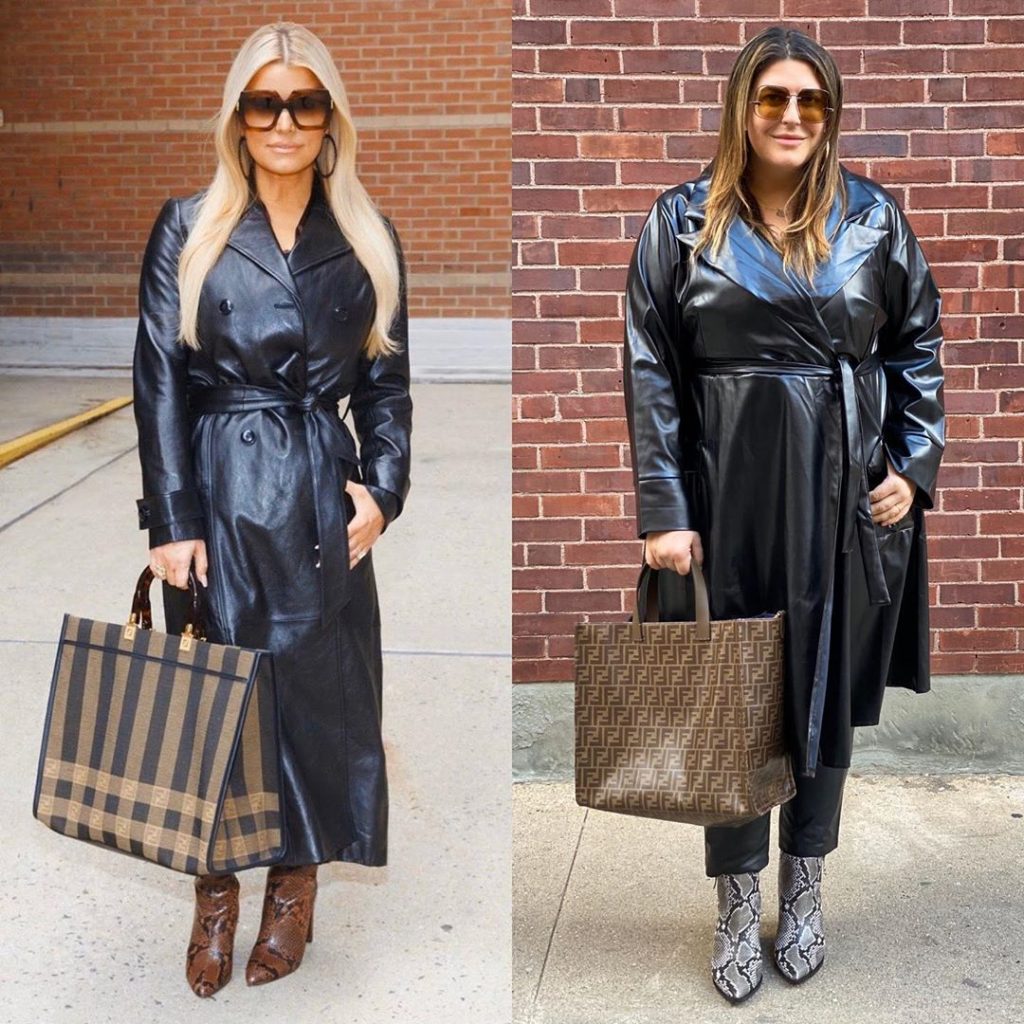 In diesem Jessica Simpson Style Inspo genießen wir die Länge auf dem ursprünglichen Ledergrabenmantel, wir müssen sagen, wir bevorzugen Katies-Version mit dem Schwarzweiß-Snakesle, im Gegensatz zu Braun, da es den ganzen Blick zusammenzieht. Ein Patentleder-Graben fügt einem Look automatisches Vertrauen hinzu.