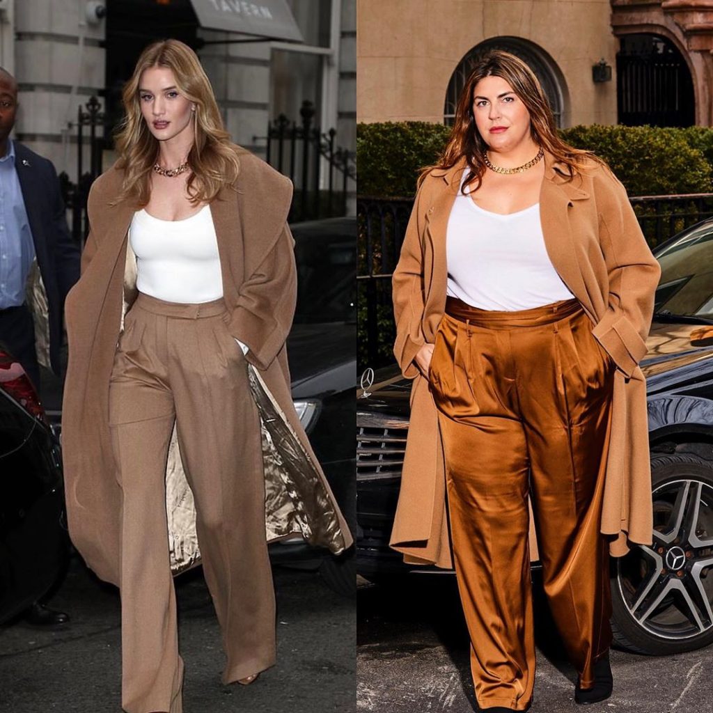 Dieser Rosie Huntington schreibt absolut mit hoher Mode-Boss Babe, und um ehrlich zu sein, bevorzugen wir Katies Look. Das Original ist sehr kamelorgerecht, und während es monochromatisch ist, brauchen wir einen kleinen Pizzaz im Look. Katie schaffte dies mit einigen glänzenden Hosen, die Tiefe und Klasse hinzufügen.