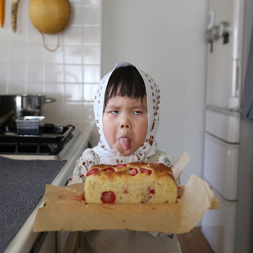 Hier ist___okinu ein feuchter und leckere Erdbeerkuchen zusammen mit einem super albernen Zunge-outen Gesicht serviert. Das macht uns zum Nachtisch besonders hungrig, und gibt uns auch einen Fall von Baby-Fieber.