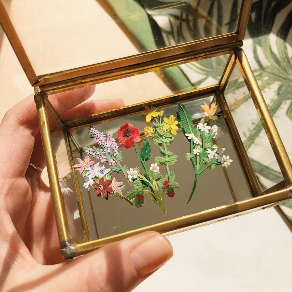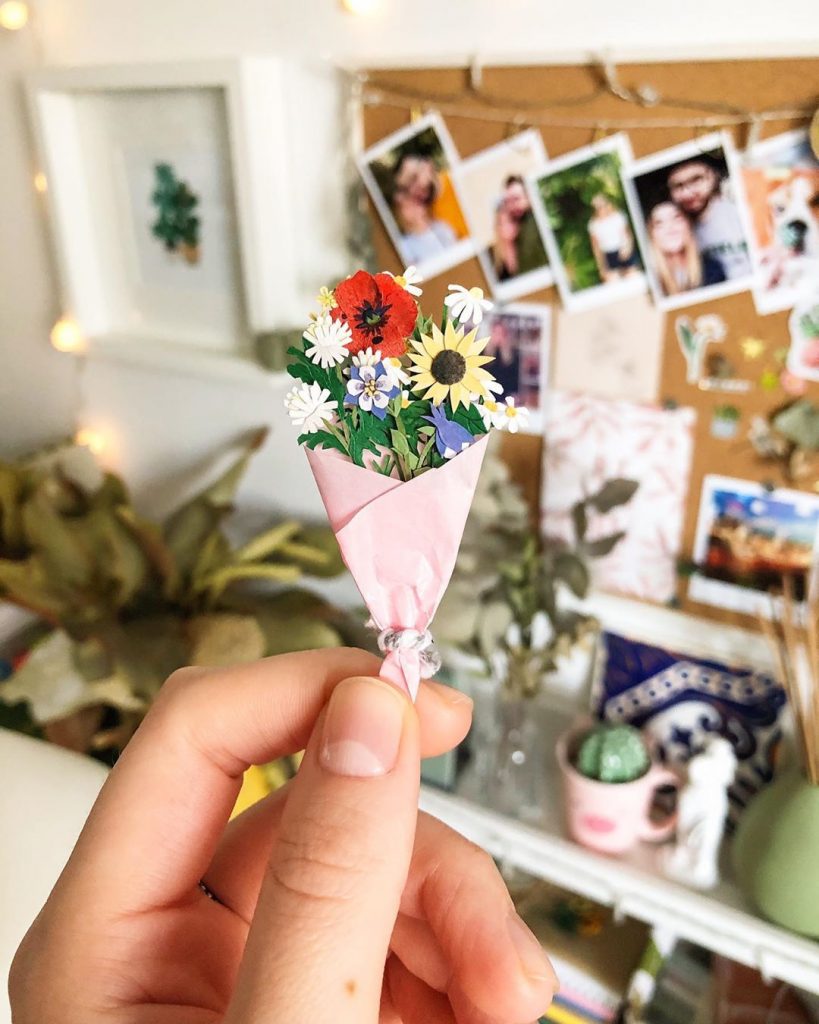 Sie tut auch Blumen von verschiedenen Farbtönen, und verkauft Papierblumen, um Ihren Telefonkoffer aufzunehmen. In der Beschriftung auf Instagram schreibt sie "Papierblumen in Ihrem Fall. Nicht für immer, aber schön. " Es ist irgendwie poetisch, wie reale Pflanzen mit ihrem temporären Wunder ähnlich sind.