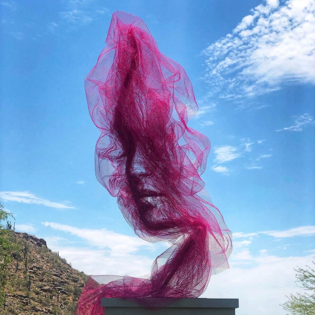 Dieser Künstler schafft Gesichtsdetails, Schattierungen und Silhouette, indem das Material strategisch das Material in verschiedenen Formen bügeln. Zuletzt ist er eine Tüll-Porträtserie, die den Frontline-Arbeitern gewidmet ist, absolviert, um die Gesundheitsangehörigen auf der ganzen Welt darzustellen, um ihre Werte von Mut und Freundlichkeit zu ehren.
