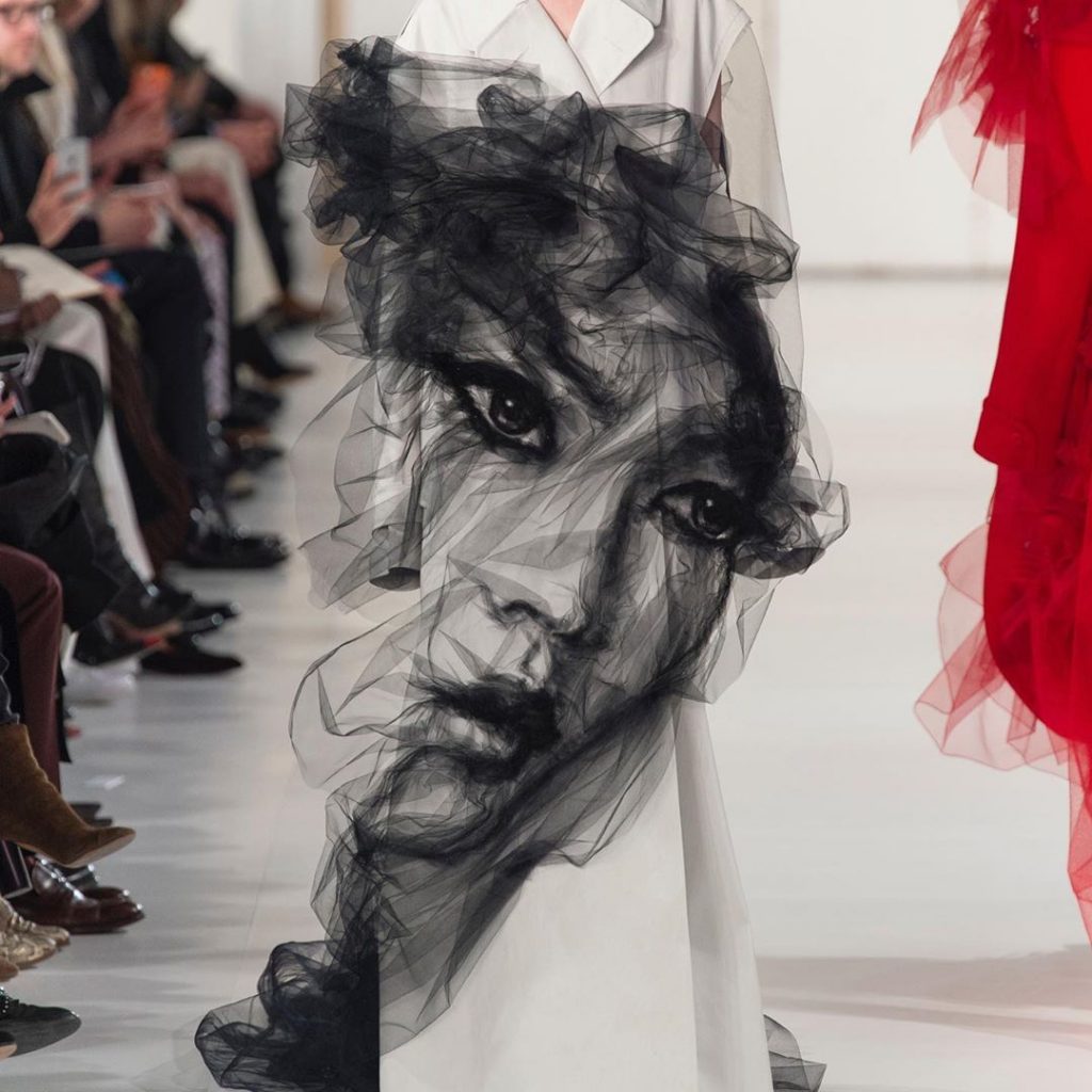 Mit seiner Arbeit an der Leinwand hat Benjamin einige wirklich kieferlosen Arbeit, die auf der Startseite mit mehreren Haushaltsnamen auf der Startseite war. Hier ist ein atemberaubendes Tüll-Gesicht auf einem Maison Margiela-Look, das 2019 von der Treffer gekauft wurde.