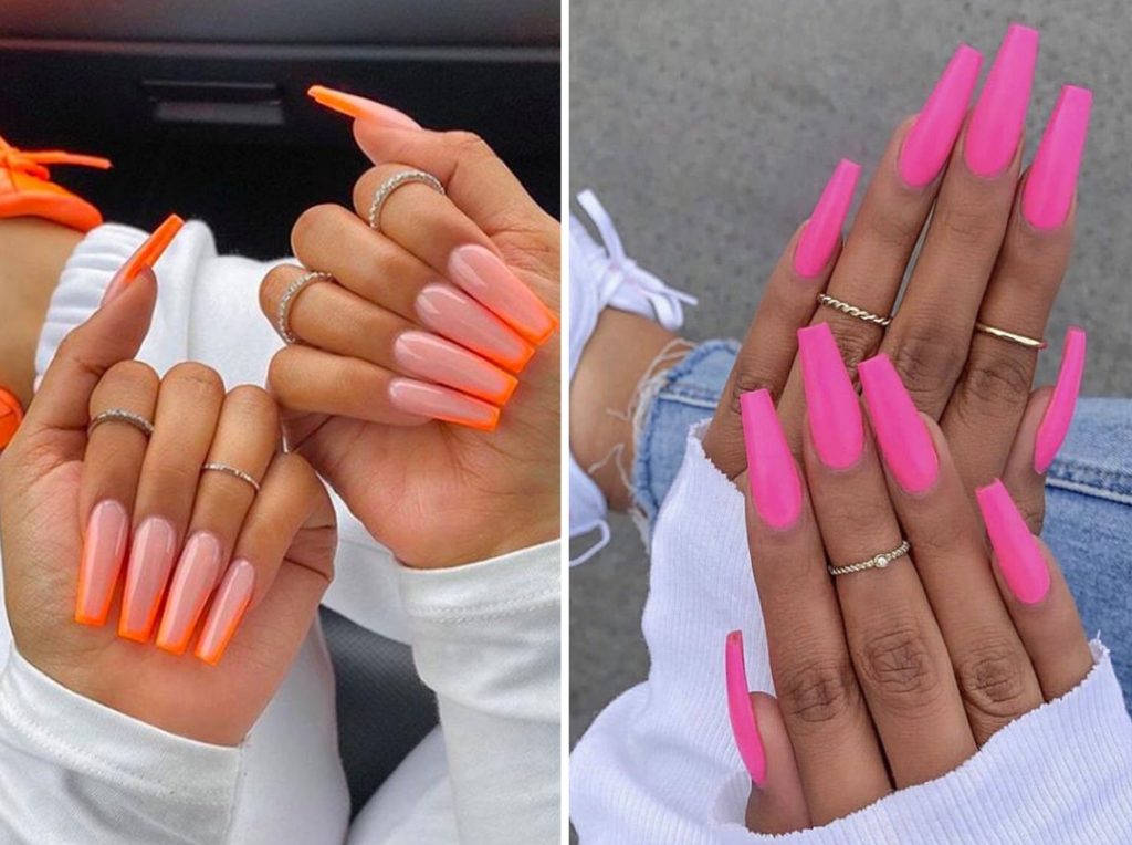 In diesem Sommer geht es um mutige Farben, also warum auch nicht viel Spaß mit deinen Nägeln haben? Jeder geht verrückt über Neons, vor allem Rosa und Orangen, sodass Sie mit diesen lebendigen Farben beginnen können. Aber denken Sie daran, dass sich Ihr Outfit ändern kann, aber der Nagellack wird nicht! Es muss also mindestens einige Ihrer Looks mit Sandalen und Hausschuhen übereinstimmen.