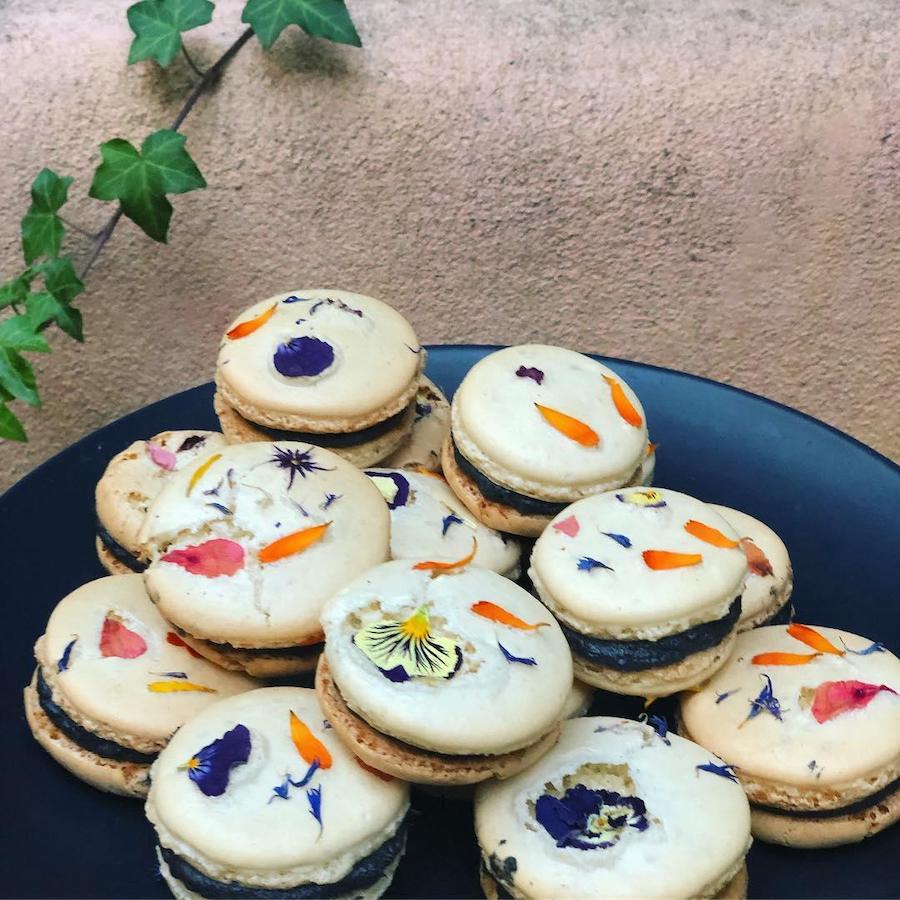 9. Loria geuntertitelt dies mit „Victorian-esque Goth Romantik Macarons mit essbaren fleurs gebacken + mit schwarzer Creme gefüllt“. Könnte es nicht besser klingen, wenn Sie versuchen.