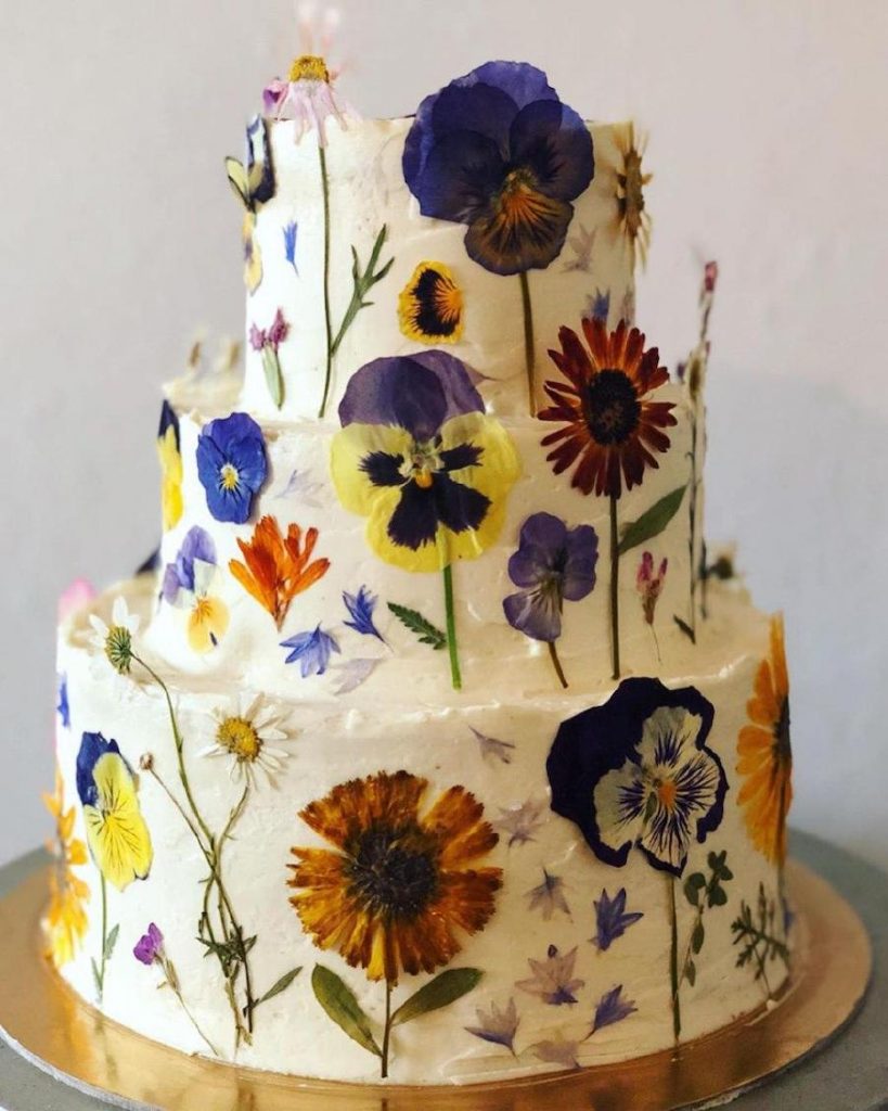 6. gepresste Blumen sind eindeutig der ultimative Weg, Kuchen zu dekorieren. Sobald Sie diese sehen, sonst nichts kann ganz, wie charmant dieses Aussehen zu vergleichen. Und all diese hübschen essbaren Blüten wurden von Hand gepflückt und drückte von Loria.