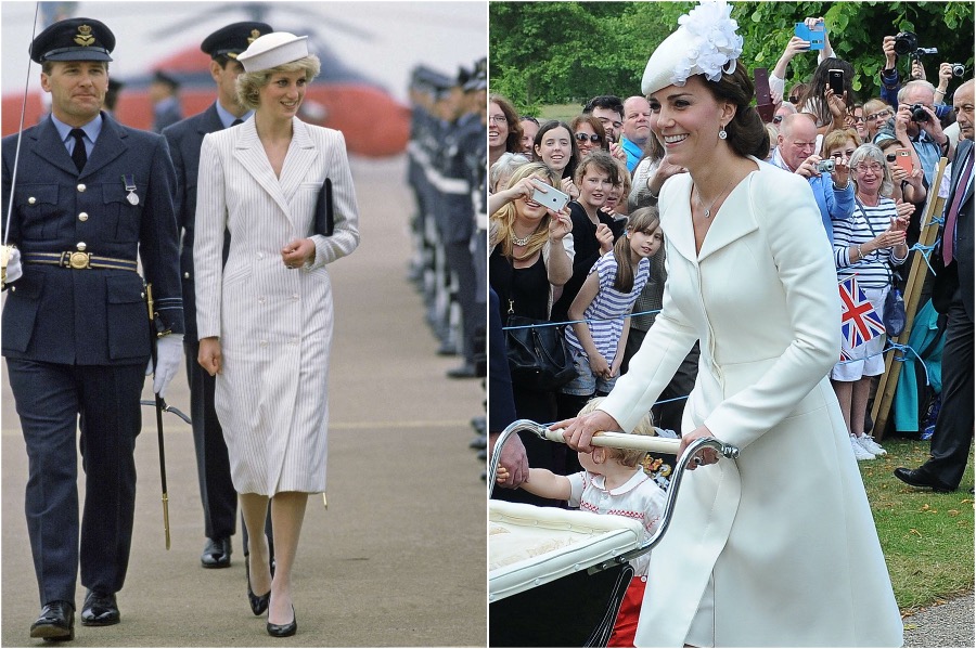 Wenn Sie tatsächlich auf ihre Outfits achten, werden Sie sehen, dass sowohl Diana als auch Kate sehr ähnliche Stücke oder einen ähnlichen Kleidungsstil getragen haben. Es könnte auf königliche Dresscode-Regeln sein, aber einige dieser Aussehen sind einfach zu ähnlich, um zu glauben, dass es ein Zufall ist.