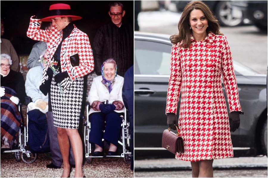 1. Hahnentritt ist seit langem ein beliebtes Muster. Es ist eines dieser klassischen Dinge, die niemals wirklich aus der Mode gehen. Aber wir sehen es selten in Rot, normalerweise ist es einfach schwarz und weiß. Es ist also wirklich interessant, dass sowohl Diana als auch Kate dieses Muster in rotem Tragen entschieden haben.