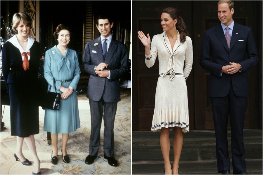 3. Wer wusste, dass Seemannkleider trägt, wäre dieses beliebte unter den neuen Royals, aber hier sind wir. Dieses Foto von Diana wurde 1980 in Buckingham Palace aufgenommen und Kate trug dieses Alexander McQueen-Sailor-Kleid im Jahr 2011 in Kanada.