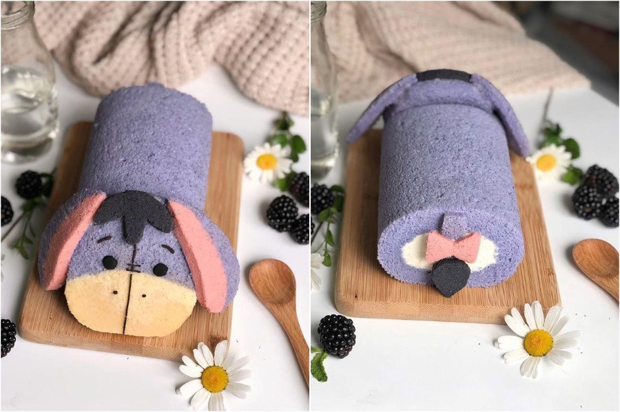 Dies einmal backte sie einen Rollkuchen, der genau wie Eeyore aussah, nur weil es immer ihre Lieblingsfigur in Winnie the Pooh war, seit früher Kindheit, und sie hatte eine Anziehungskraft, die es in einer Rollkuchenform wirklich kühl aussehen konnte. Und Junge war sie richtig. Schauen Sie sich diesen Kuchen an, die Farbe, das Detail, den kleinen Schwanz mit einem Bogen!