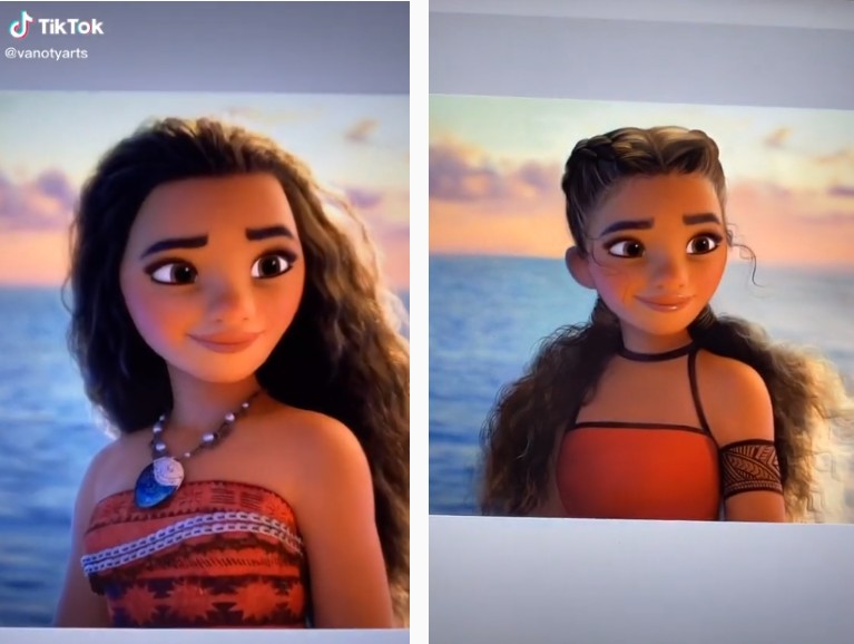 Moana ist ganz allein, aber mit einiger Unterschrift Yudie-Styling (schauen Sie sich diese Boxer-Zöpfe!) Und ein zusätzliches Armmanschetten-Tattoo aus, sieht sie sogar härter aus als Lara Croft. Eine erwachsene Bluse und eine schiere Lippe zeigt, dass Moana von der Kindheit bis zum Teenagerleben absolviert hat!