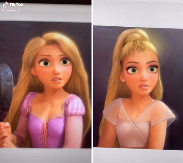 Wir können es kaum erwarten, zu sehen, was diese Zeichnungsgöttin als nächstes auftaucht! Für jetzt ist unsere Lieblingsumwandlung die atemberaubende Transformation von Rapunzel vonVerheddert. Schau, was für eine Schönheit, die sie jetzt ist!