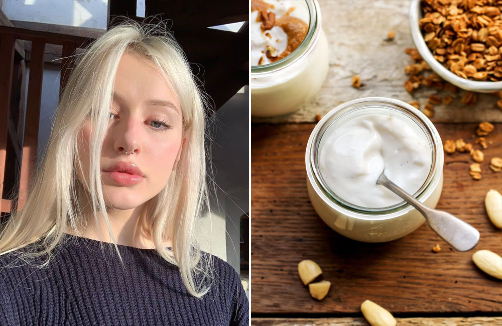 Frauen verwenden Joghurt seit Jahrhunderten als Hautlöster. Es ist eines der einfachsten und natürlichsten Home-Mittel zur Verbesserung der Hautton. Es ist mit Milchsäure verpackt, das ist der Whiting-Agent Nummer eins, der Ihre Haut fair und strahlend macht. In Indien wissen Frauen über die medizinischen Eigenschaften von Gram Mehl, die Akne heilen und Hautinfektionen verhindern können. Mischen Sie Joghurt und Gramm Mehl, um eine perfekte nährende Hautmaske zu erstellen. Tragen Sie es auf Ihre Haut auf und gehen Sie etwa eine halbe Stunde lang, dann spülen Sie es ab.