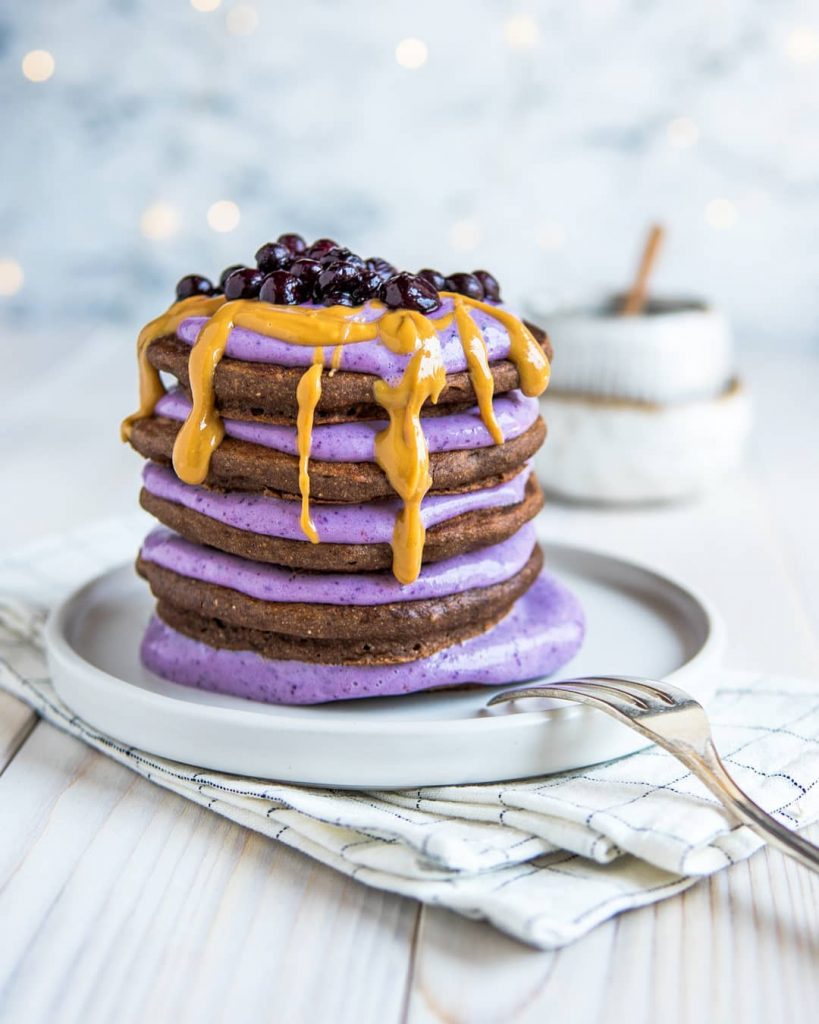 Wir lieben die gesunden Versione von Junk Food, die sie schafft, wie diese sorgfältig gefertigte blaue Ombre Pil of Pancakes. Sie bekam die blaue Färbung von blauer Spirulina, infundierte noch mehr Ernährung. Wir würden gerne einen unserer Cheat-Tage mit dieser Königin von Essen verbringen und zwei Portionen davon essen!