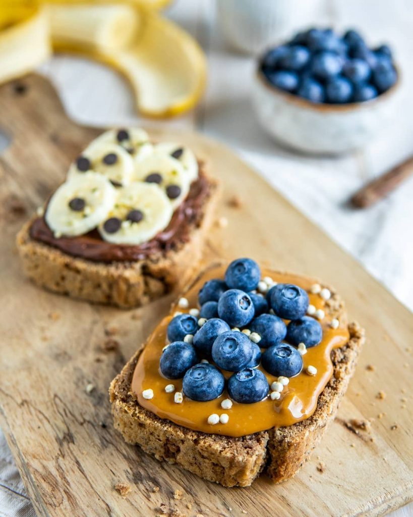 Unser Erdnussbutter-Toast sieht definitiv nicht so aus. Wenn wir es tun würden, wollten wir es mehr essen! Upgrade vom Standard-Ph & J-Sandwich mit diesen prallen Blaubeeren oder aktualisieren Sie Ihre Schokolade mit einigen dünn geschnittenen Bananen, Hanfsamen und einem (leichten) Besprühung von Schokoladenstrecke. Welches würdest du auswählen?