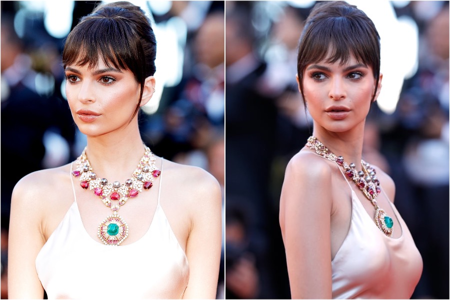 Emily zieht sich auch gerne an die Nasen an das Filmfestival 2017, das sie diese aufwendige Bulgari-Halskette truge, die Rubine, Diamanten und sogar einen Smaragd auszeichnete. Sie müssen ihren Requisiten geben, es ist ziemlich große und bunte Halskette, um sich zu ziehen, aber mit einem einfachen Creme-Seidenkleid zu tragen, war definitiv ein großer Schritt.