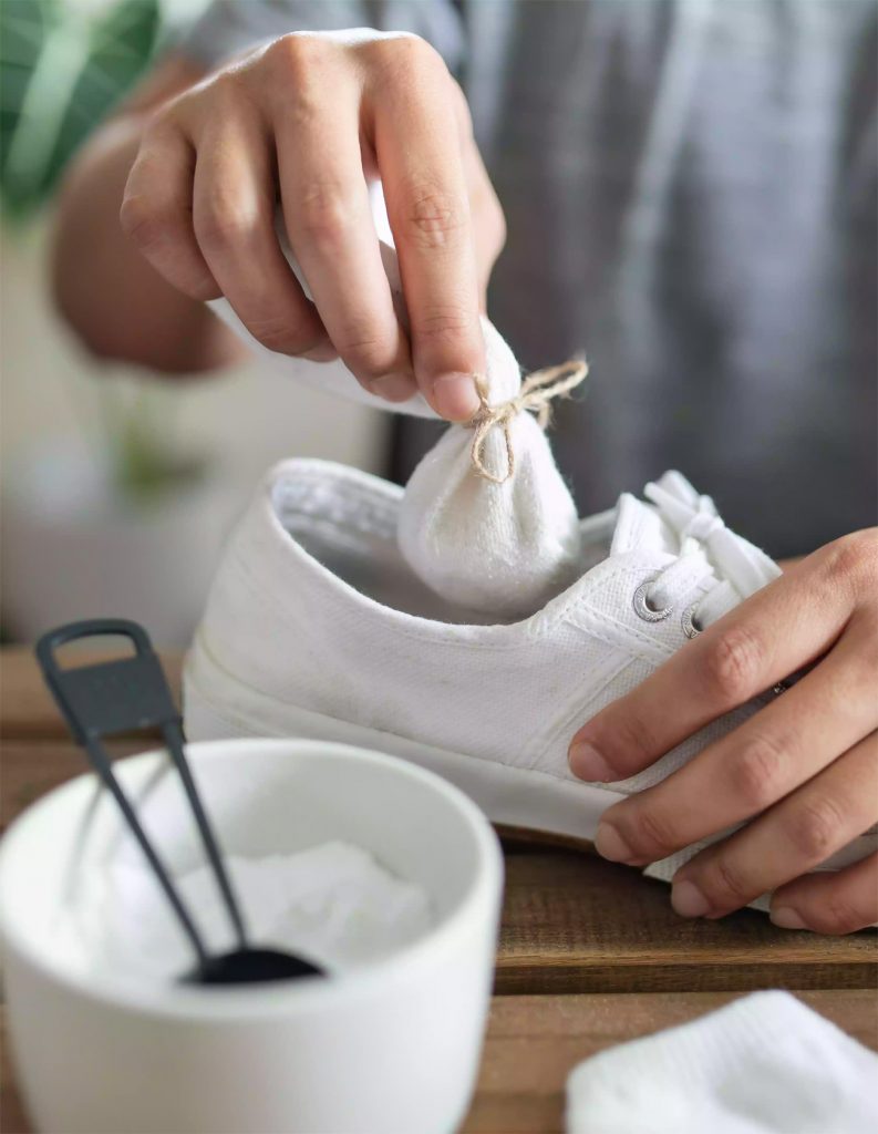Smelly-Schuhe können ein echtes Problem sein, aber es gibt einen einfachen Trick, den Sie jederzeit verwenden können. Backpulver reduziert alle Arten von schlechten Gerüchen und macht Ihre Schuhe in kürzester Zeit geruchlos. Sie können ein paar Back-Soda in Ihre Schuhe legen und lassen Sie es einen Tag dort sitzen, bevor Sie es herauswerfen. Sie können auch spezielle Beutel oder kleine Beutel aus Textil oder Socken erstellen. Füllen Sie sie mit Backpulver und legen Sie in Ihre Schuhe.