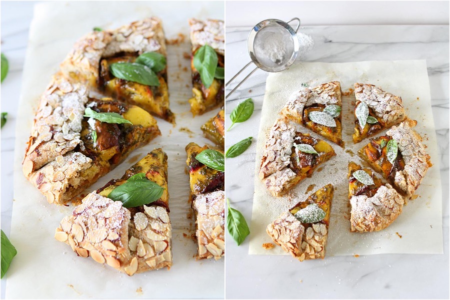 Galettes sind großartig für diejenigen, die nicht gerne mit Kuchenkrusten spielen. Sie sind einfacher zu machen und haben diesen rustikalen hausgemachten Blick auf sie. Und natürlich können Sie absolut alles als Füllung verwenden, aber Pfirsich und Basilikum sind eine überraschend köstliche Kombination.