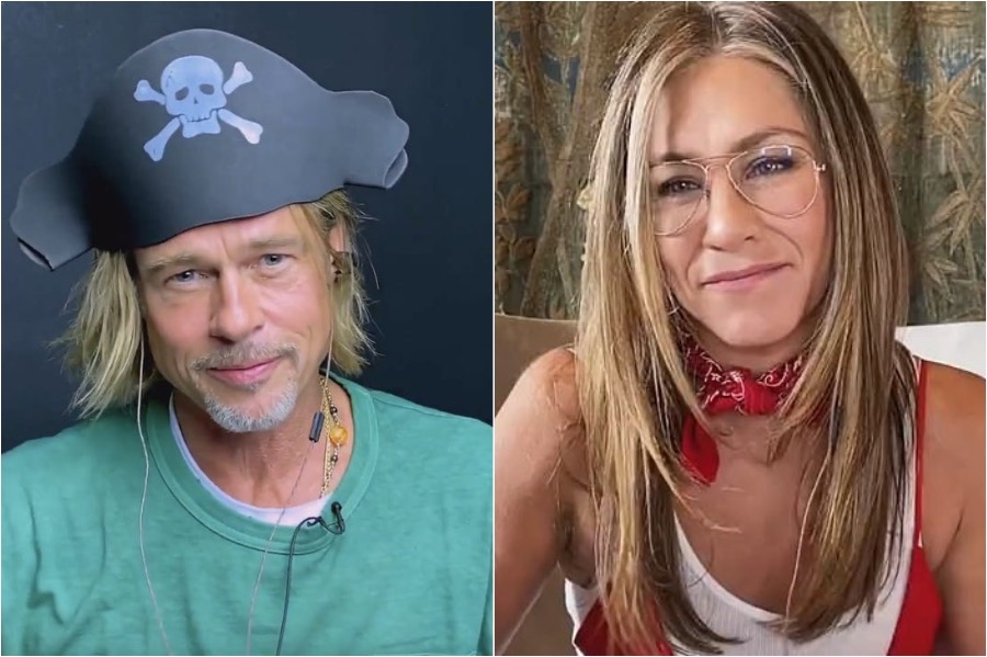 Jennifer Aniston und Brad Pitt spielen eine dampfende Szene auf Zoom