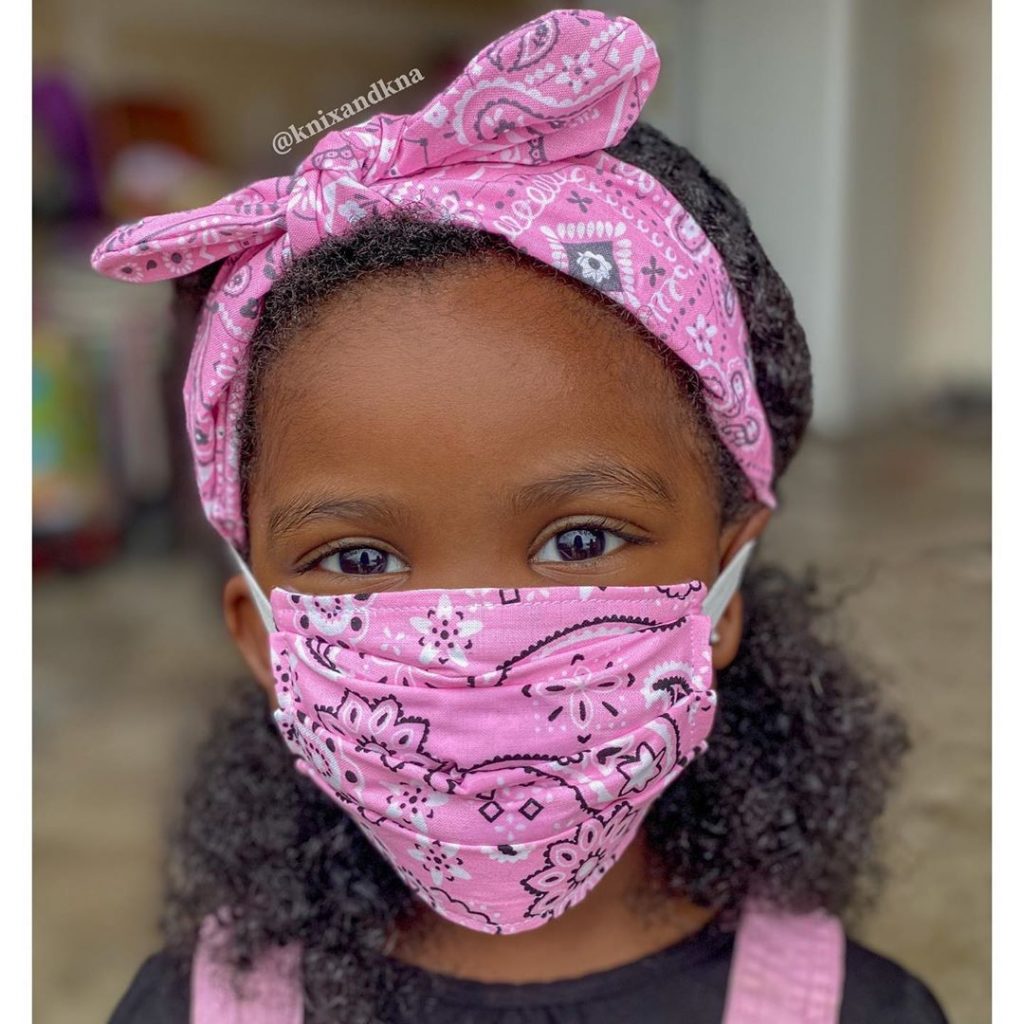 Sie fragen sich vielleicht, wo haben sie diese niedlichen rosa Masken bekommen? Nun, sie haben sie gemacht. Ihre Mutter lehrte ihnen, wie man an diesem Tag eine Maske nähen und sogar ihre Fingernägel ein passendes Rosa lackierte, seit sie es angefordert hatten.