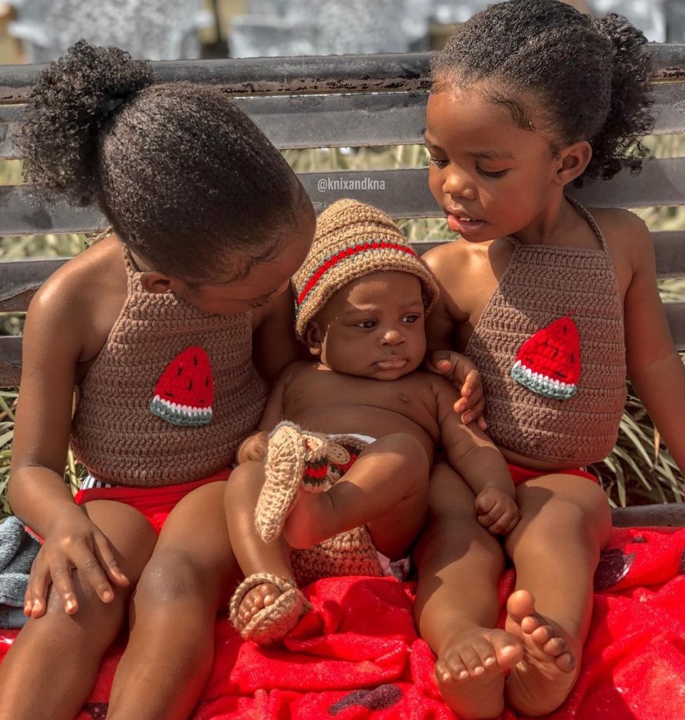 Dies sind solche einzigartigen Häkelkreationen - in der Regel sehen wir den gleichen "70er-Stil, der seit Jahren übertrieben wurde. Stattdessen lassen diese Halfteroberteile ihre Haut glühen und sind mit einem kleinen Wassermelonenkeil in der Mitte geschmückt. Das Baby trägt auch einen garchettenlosen Look - schau dir die passenden Sandalen an!