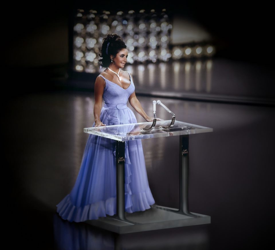 Der gefallene Halsausschnitt von Elizabeth Taylor für den Oscar der siebziger Jahre war ein Traum von Chiffon mit Violettschatten und Periwinkeln. Die Königin der Kurven entworfen, hatte keine Angst, sie zu zeigen, zusammen mit der 69-Karat-Diamant-Halskette, die ihr Ehemann Richard Burton ihn gab.