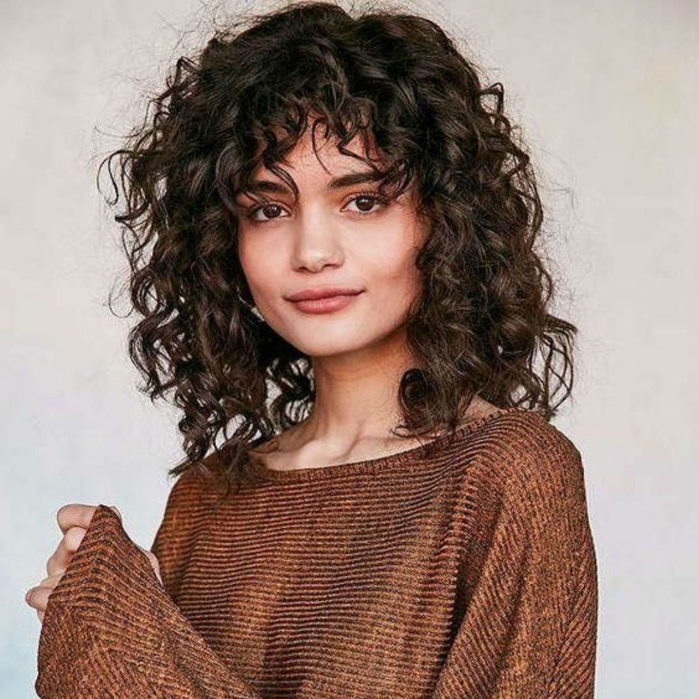 Ein Feuer der Frische weht auf lockigen und lockigen Haaren, die auch das Recht haben, zu ihrem Fransen. Dieser Stil mischt sich perfekt mit einem kurzen Schnitt, um beispielsweise das Volumen und die feurige Seite zu verbessern.