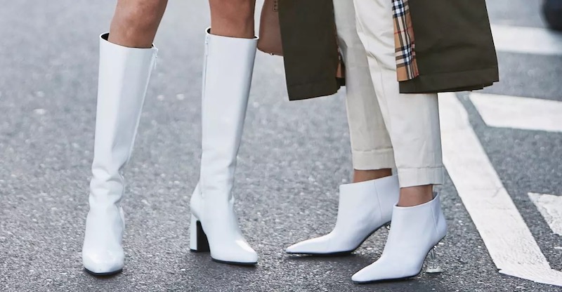 Bei den Knien hoch groß (in diesem Fall wird die Ferse vorzugsweise flach sein, um nicht in die vulgäre Combo "Fersen Fersen" oder eher Mini zu fällt, die Knöchelstiefel sind immer noch auf dem Platz. In diesem Jahr finden wir sie in der weißen Lederversion. Tragen Sie sie mit einem Minirock für eine sofortige Reise in die sechziger Jahre.