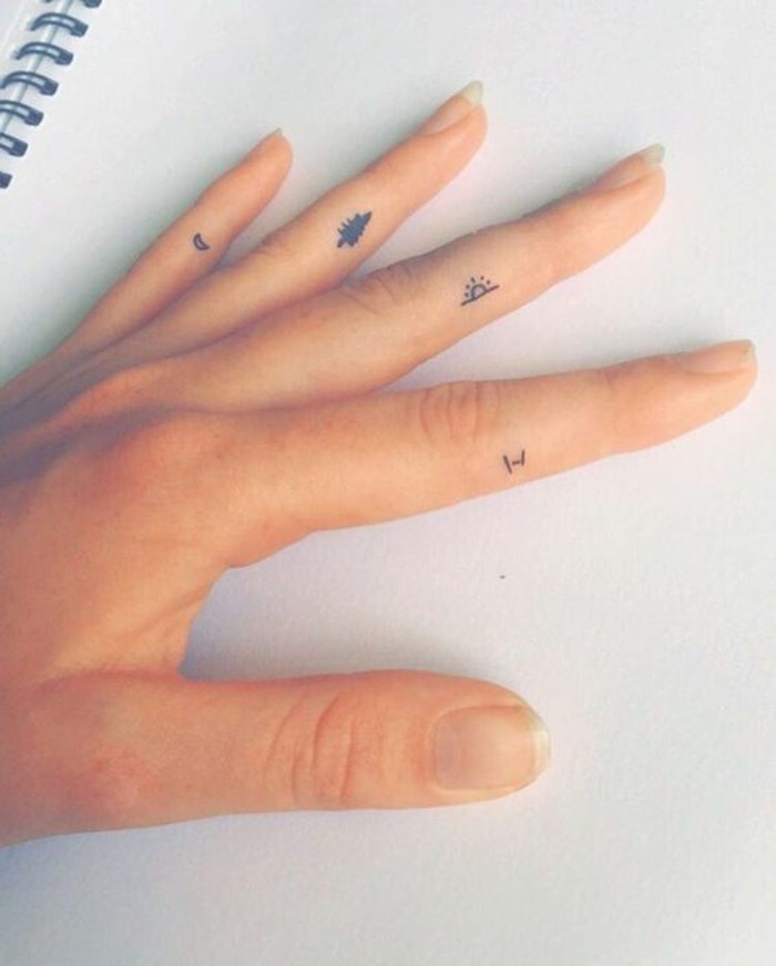 Aber die eigentliche Revolution der letzten Jahre sind die Mini-Tätowierfinger! Innen oder auf der Rückseite der Phalanges oder an den Knöcheln. Und lass uns wirklich ertragen!